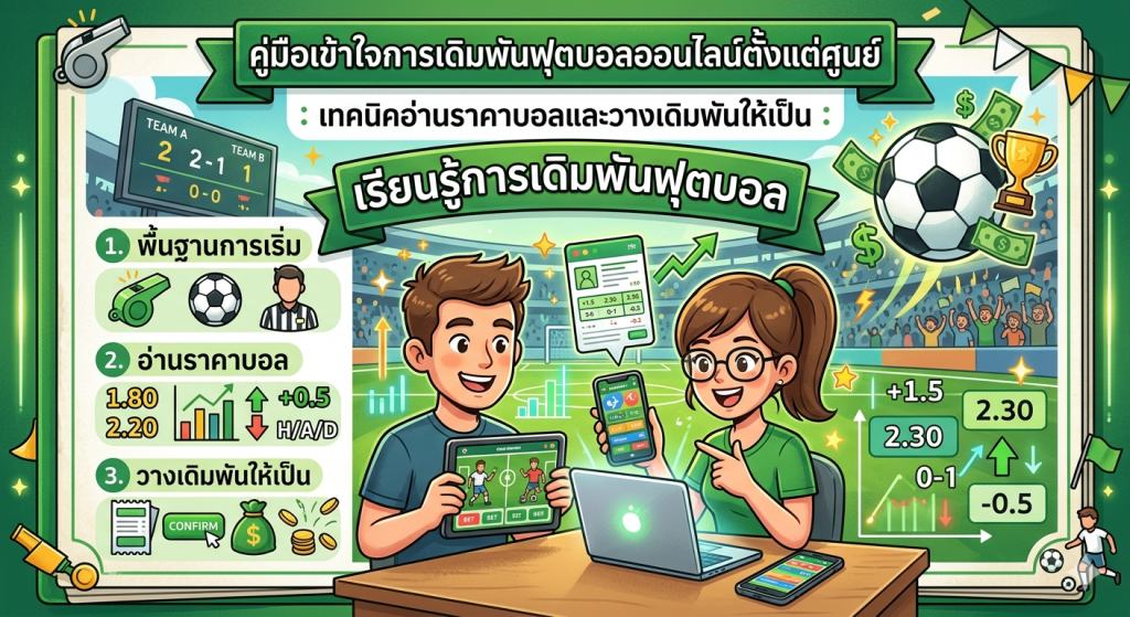 บทความนี้จะพาผู้อ่านไปทำความรู้จักกับพื้นฐานของการเดิมพันฟุตบอล ตั้งแต่หลักการทำงานของระบบเดิมพัน รูปแบบการเดิมพันยอดนิยม วิธีอ่านราคาบอล ไปจนถึงแนวทางการวางแผนเดิมพันสำหรับมือใหม่ เพื่อให้สามารถเข้าใจเกมและเริ่มต้นได้อย่างมั่นใจมากขึ้น